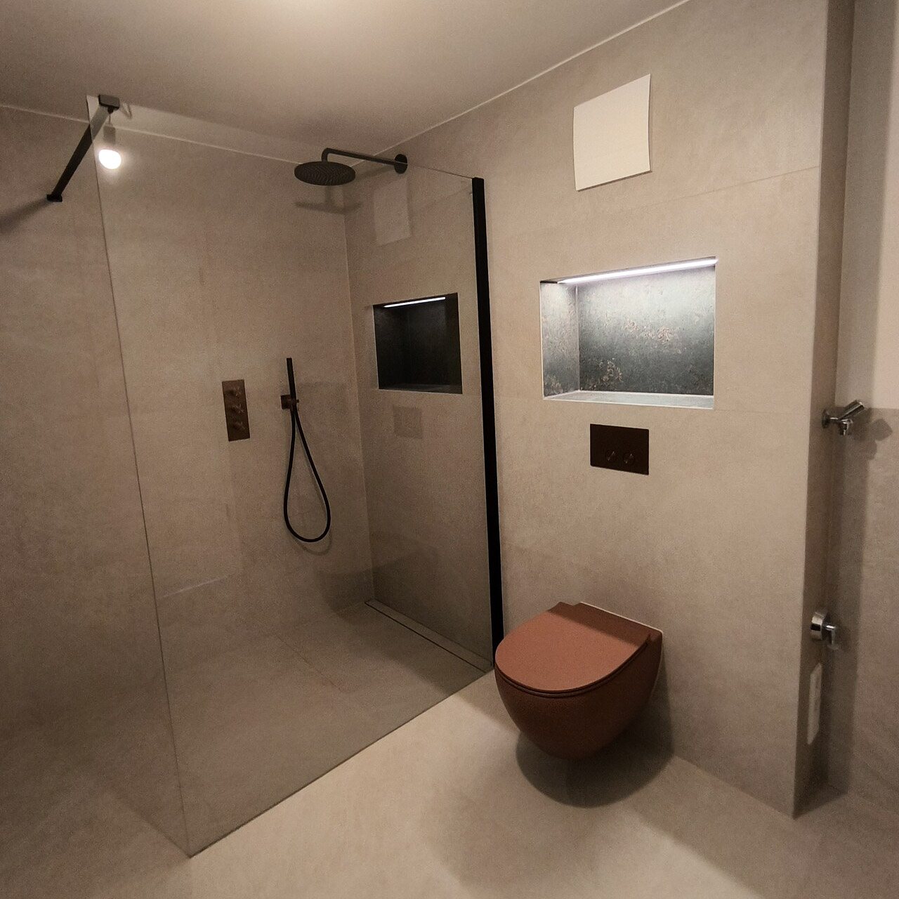 Hier sehen Sie das gelungene Endergebnis der beiden Bädern sowie einen kurzen Zwischenstand der Installation im Kellerbad.